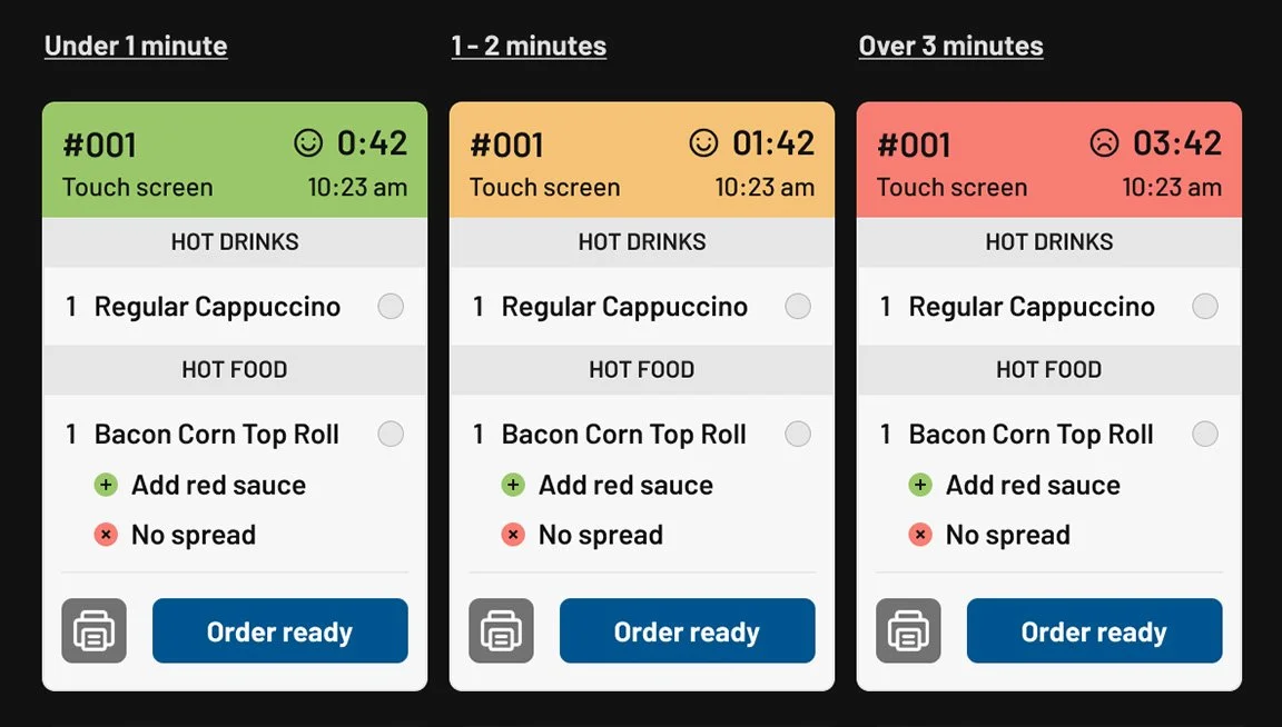 Customised items were highlighted with clear visual cues, making special requests easy to spot and reducing the risk of them being missed during preparation.