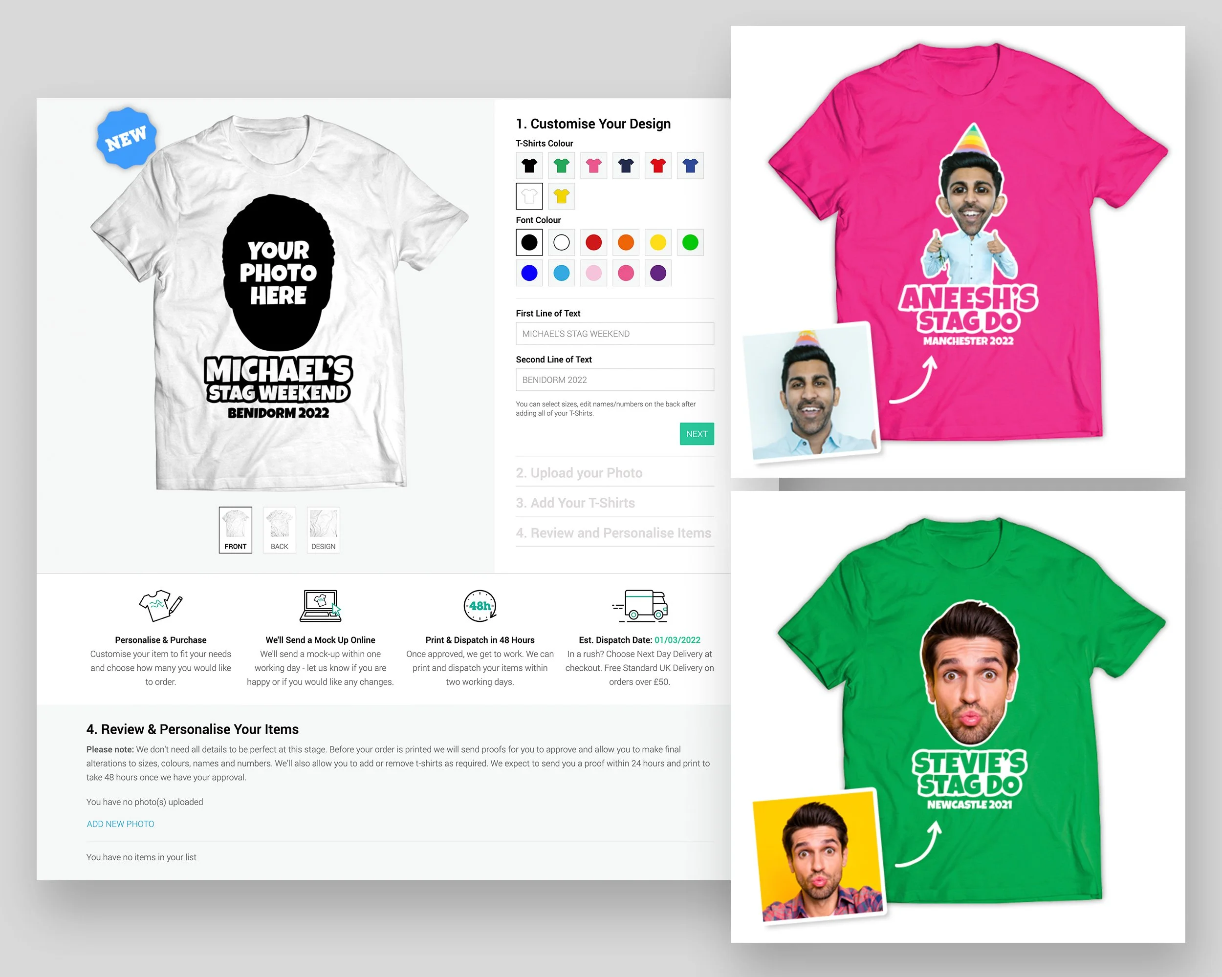 Working as an in-house designer for the specialists in stag and hen, I helped develop a new look for the entire LNOF website, taking responsibility for UI/UX while also photographing and editing products for their webshop. I also worked on illustrations across their blog and t-shirts, while introducing a new way to order personalised t-shirts online.